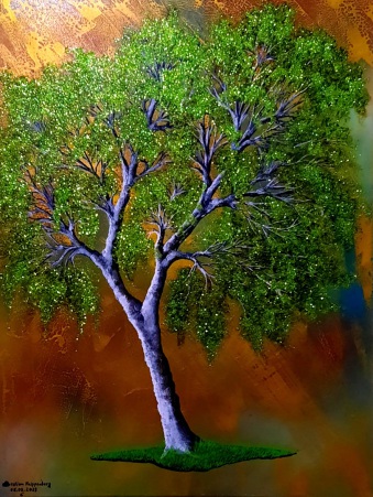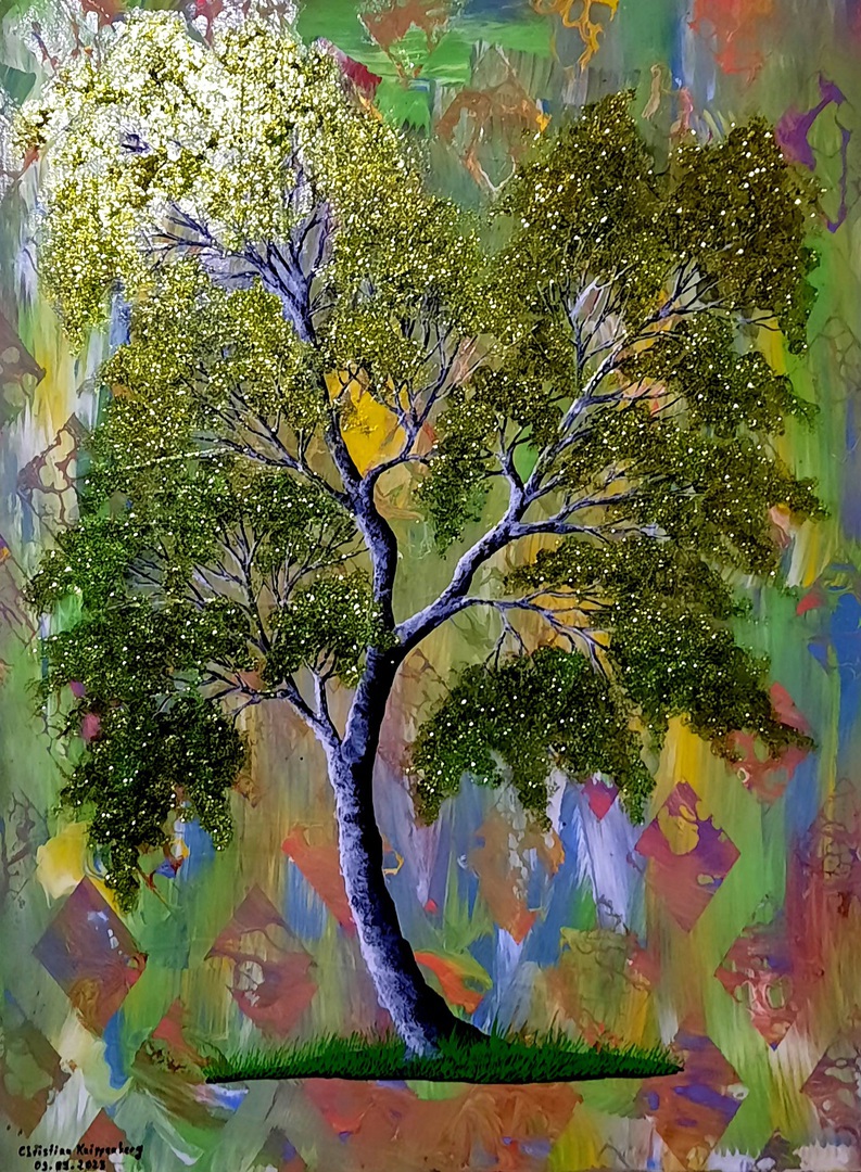 Material: Acrylic / Oil paint, Green Glitter