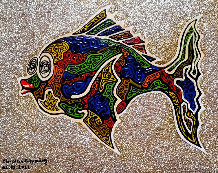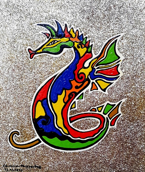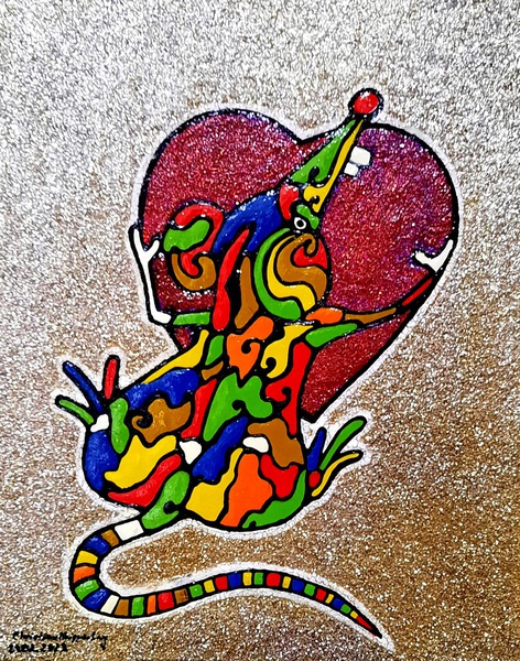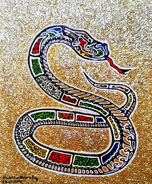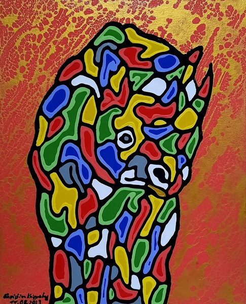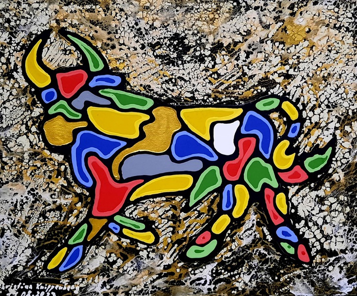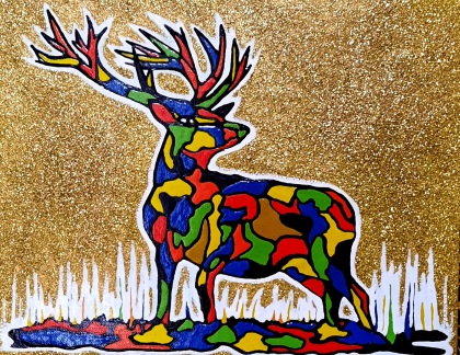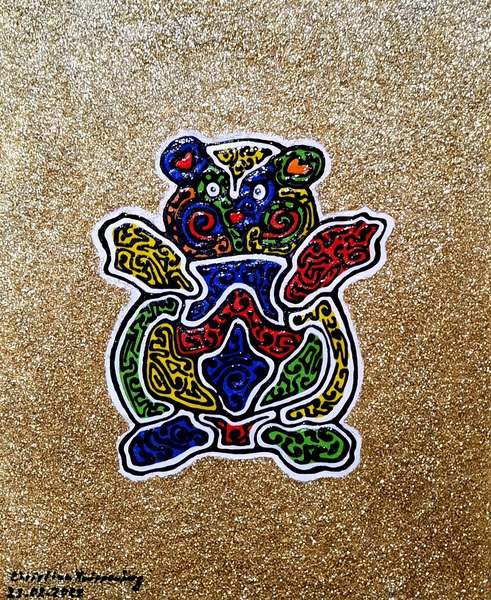 Material: Cardboard, Acrylic paint, Gold paint